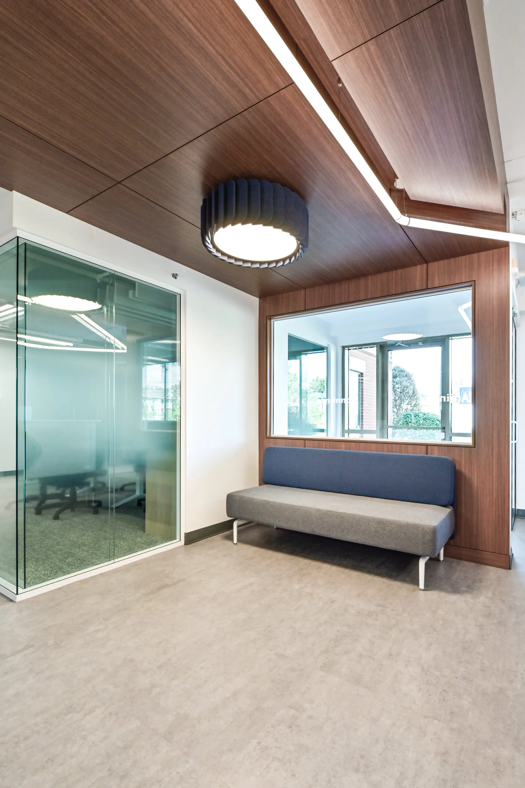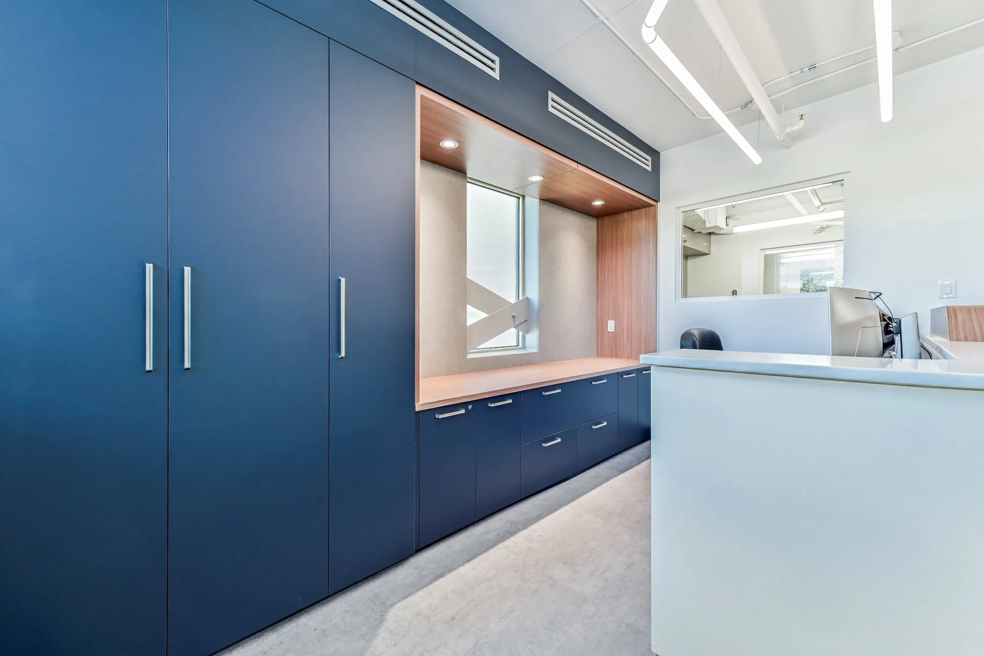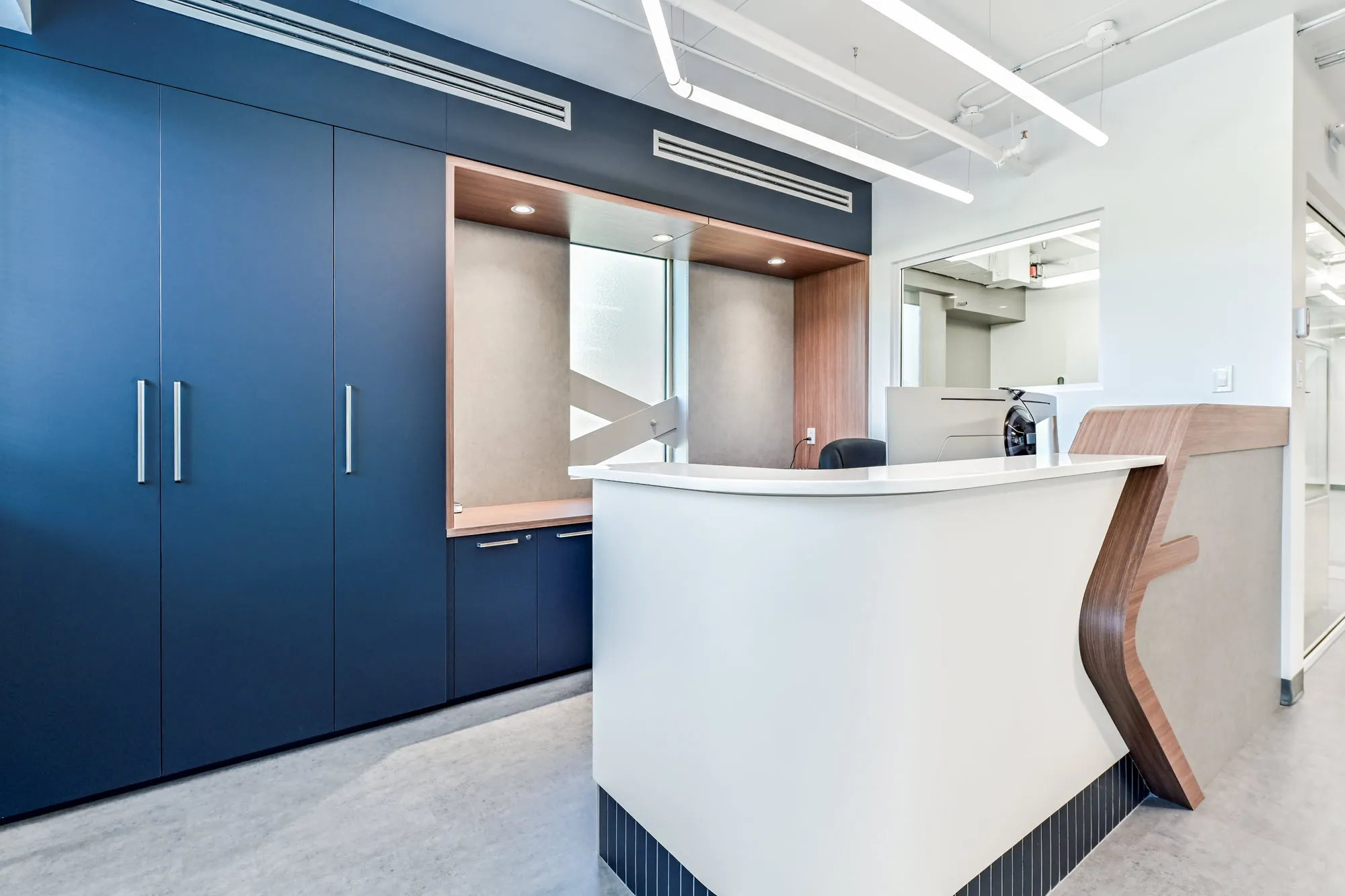 This corporate space was designed to be both functional and elegant, showcasing the diversity of custom millwork elements.