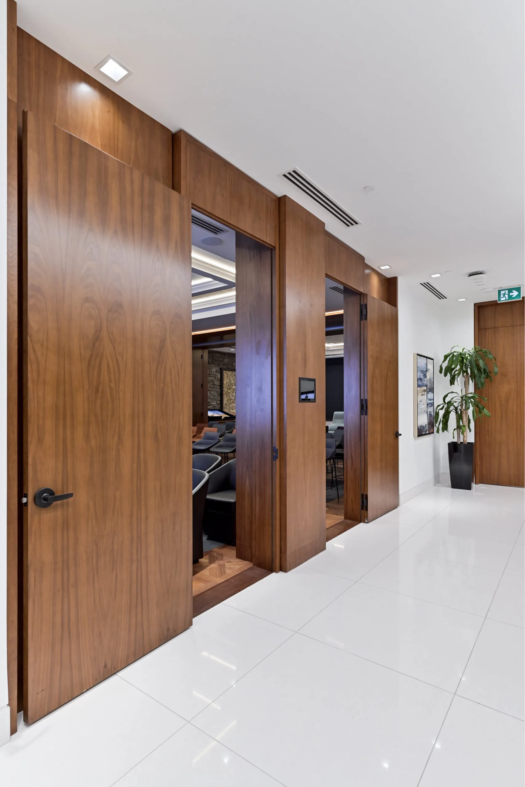 The refined integration of commercial doors and frames highlights Inter-Meuble’s expertise in crafting harmonious, tailor-made environments.