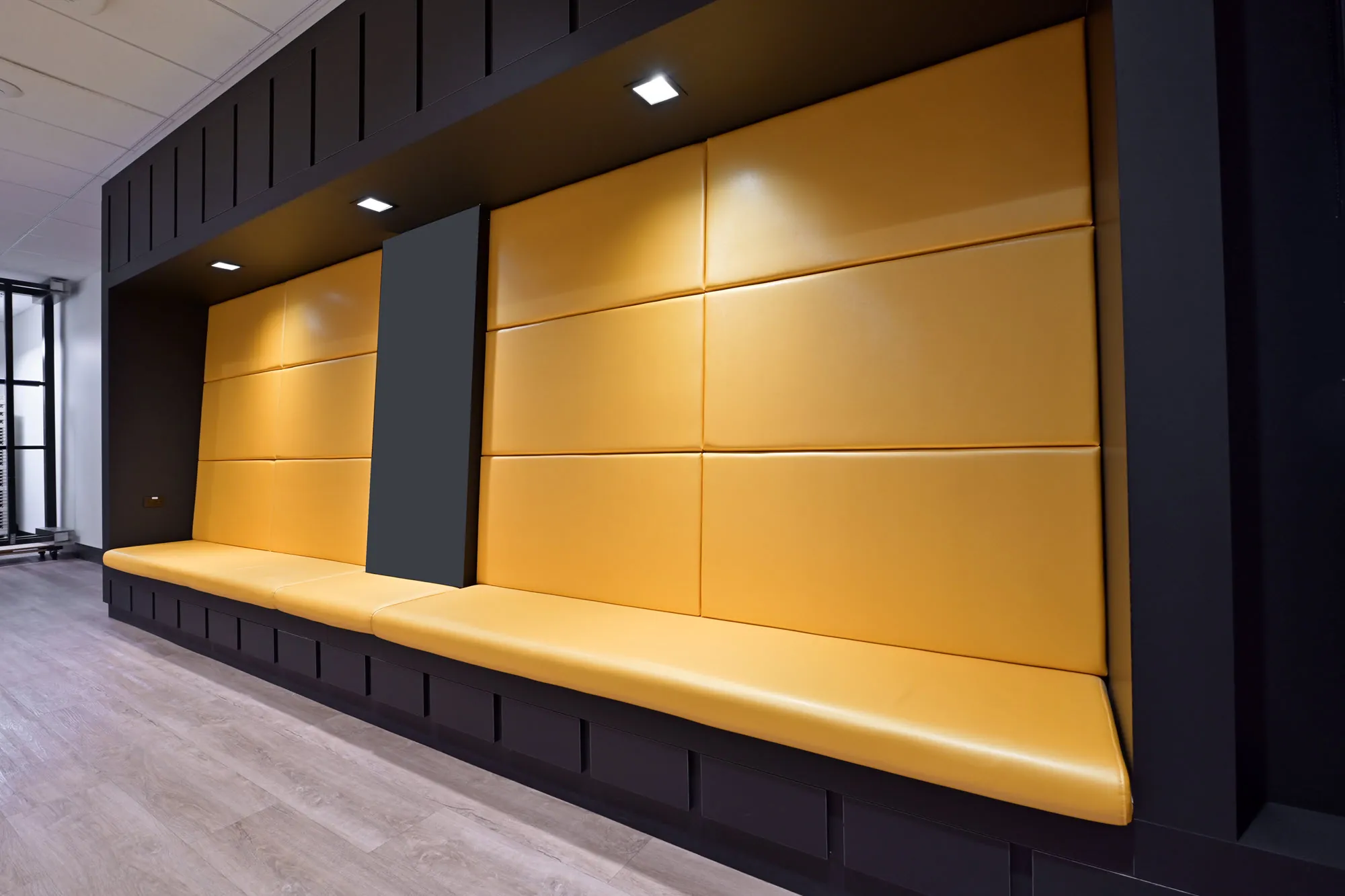 Leather banquettes create distinctive comfort zones that encourage both style and conviviality.